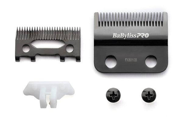 The BaBylissPRO FX8010B Black Graphite Replacement Taper Blade is designed for ultra-precise, clean cuts and perfect fades. Made from durable black graphite, this blade fits all 2-hole blade systems and is compatible with BaBylissPRO FX870 and FXF880 clippers. Its flat, elongated cutting surface supports a smooth vertical cutting motion, making it ideal for achieving seamless fades and professional results.