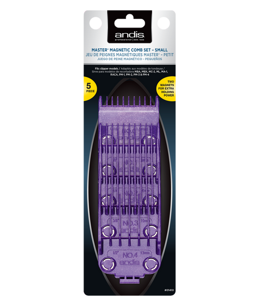 Designed to seamlessly attach to compatible Andis clippers, these patented magnetic combs eliminate the hassle of traditional clips that often bend or break. The long-lasting magnets provide a secure snap-on fit, ensuring combs stay firmly in place during use. Made for durability and ease, this comb set is compatible with models MBA, MC-2, ML, PM-1, and PM-4, making it an essential accessory for professional and at-home grooming.