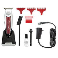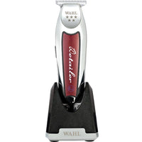 The Wahl 5 Star Cordless Detailer Li #8171 is a professional-grade cordless trimmer designed for barbers and stylists who demand precision and reliability. Made in the USA, this versatile unit features a close-cutting T-wide blade ideal for detailing, fine lines, and facial hair designs. Powered by a lithium-ion battery with a 100-minute runtime, it offers corded and cordless use, complemented by an ergonomic design and a heavy-duty charging stand with a unique swivel cord rotation for space-saving convenience.