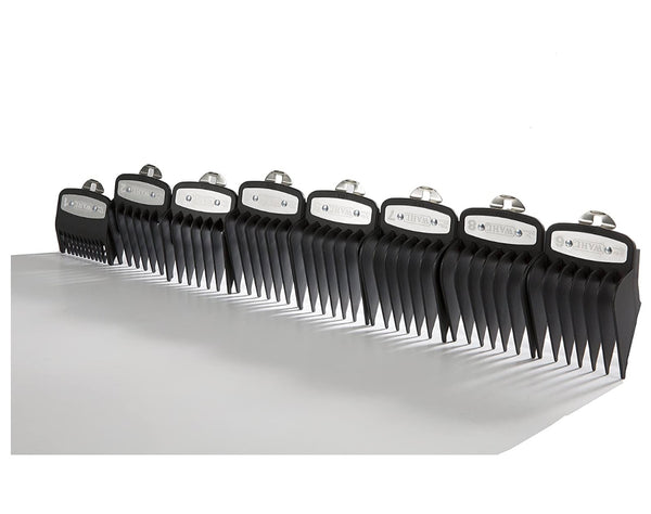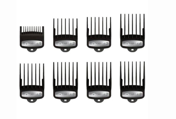 Wahl Premium Black Guards 1-8 Pack offers professional-grade, durable metal cutting guides designed for precise fades and consistent hair lengths. Made for Wahl Professional full-sized clippers (excluding detachable blade models), these secure-fitting guards provide reliable performance and maximum versatility across various blade sizes. The set includes eight guards ranging from 1/8” to 1” to help achieve clean, sharp cuts with ease. Trusted by barbers since 1919, Wahl continues to deliver quality products that protect hair and skin while ensuring superior styling results.